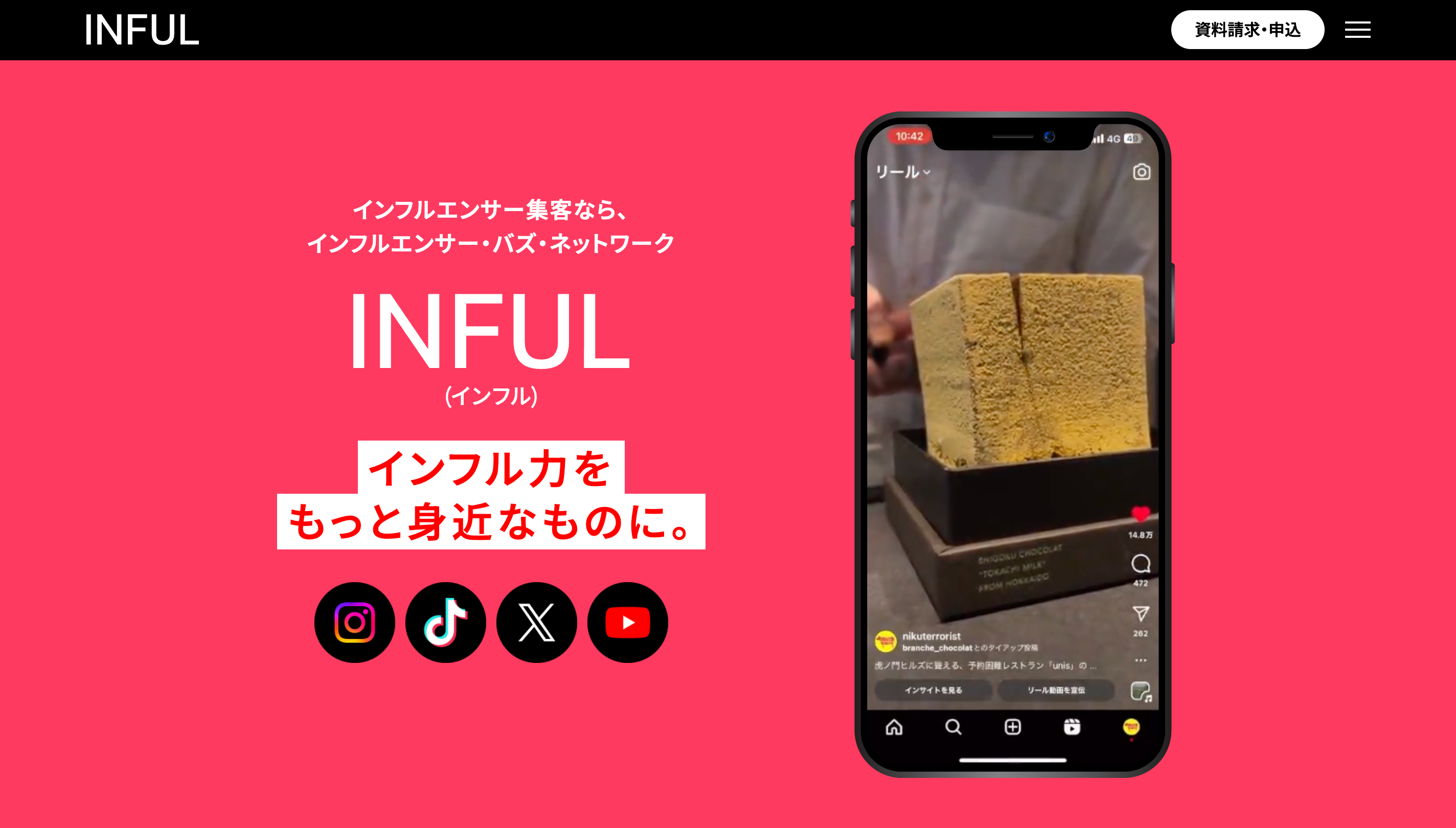 INFULにおいては、そうしたデータを活用し、適切なインフルエンサーをすべておまかせ運用でキャスティングすることで、より多くの企業様に安心してご利用いただけるようサービスの完成を実現しました。