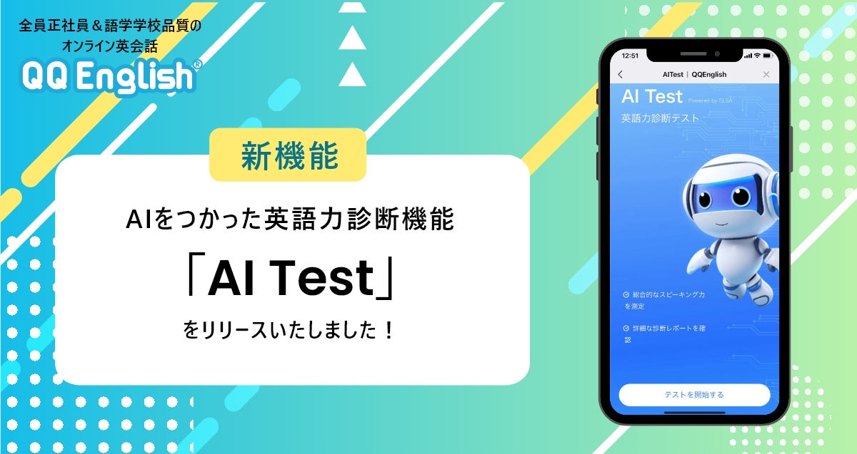 【新サービス】オンライン英会話「QQEnglish」がAIを使った英語力診断テスト「AI Test」をリリース!スピーキングを中心とした英語力を無料診断します!