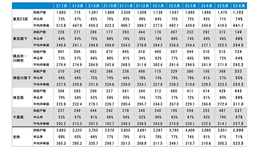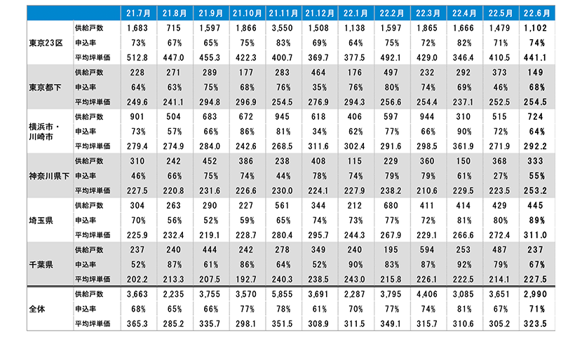 不動産ビッグデータとAI等のテクノロジーを活用し、不動産情報プラットフォームを提供する株式会社マーキュリーリアルテックイノベーター(本社:東京都新宿区 代表取締役:陣 隆浩)は、独自調査による新築分譲マンションの動向を発表致します。今月は、2022年6月度分譲実績データです。