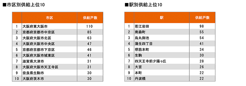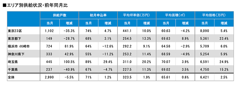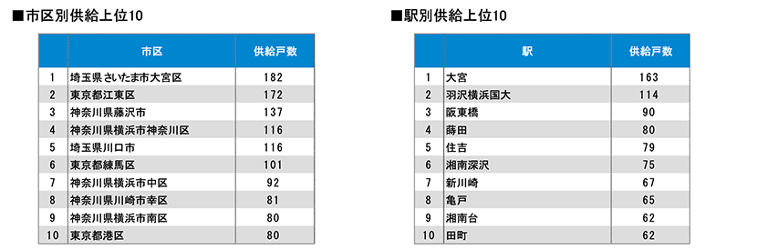 着工件数等を集計しました。また、前年同月における比較や市区別、駅別の供給ランキング等も算出しました。