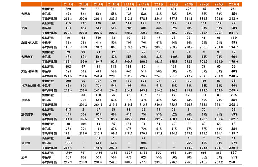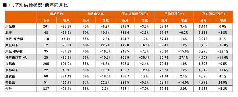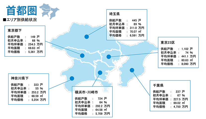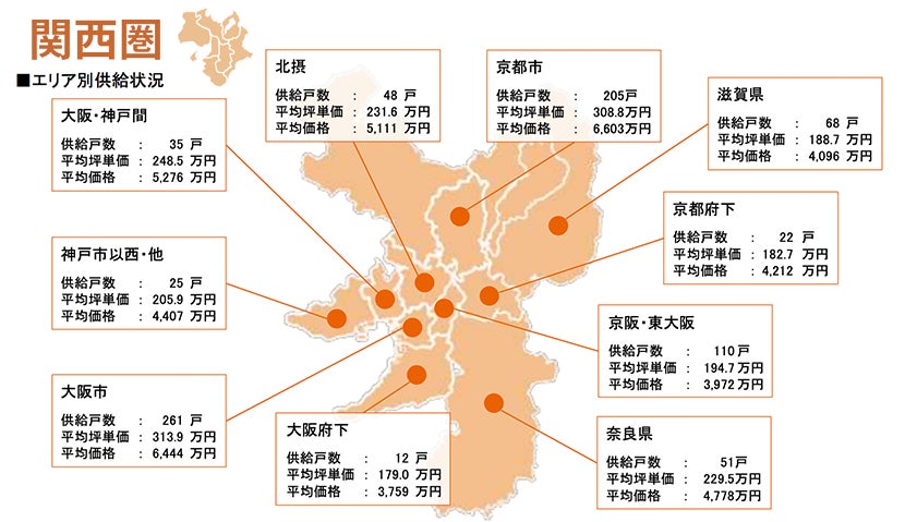 集計対象エリアは首都圏及び関西圏となっており、それぞれのエリア別相場情報、需給動向、
