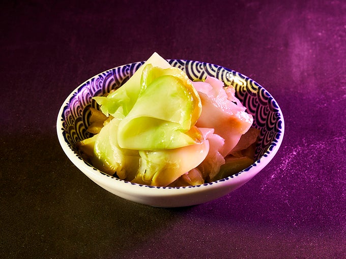 青山椒オイルとごま油で浅漬けのザーサイを和えました。