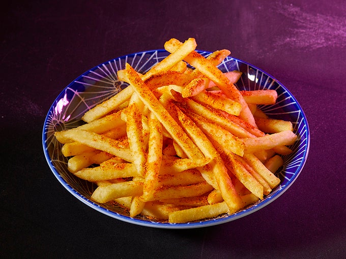 パンチの効いた辛味の中に、香ばしいガーリックや野菜の旨味が効いた後引く辛味のフライドポテトです。