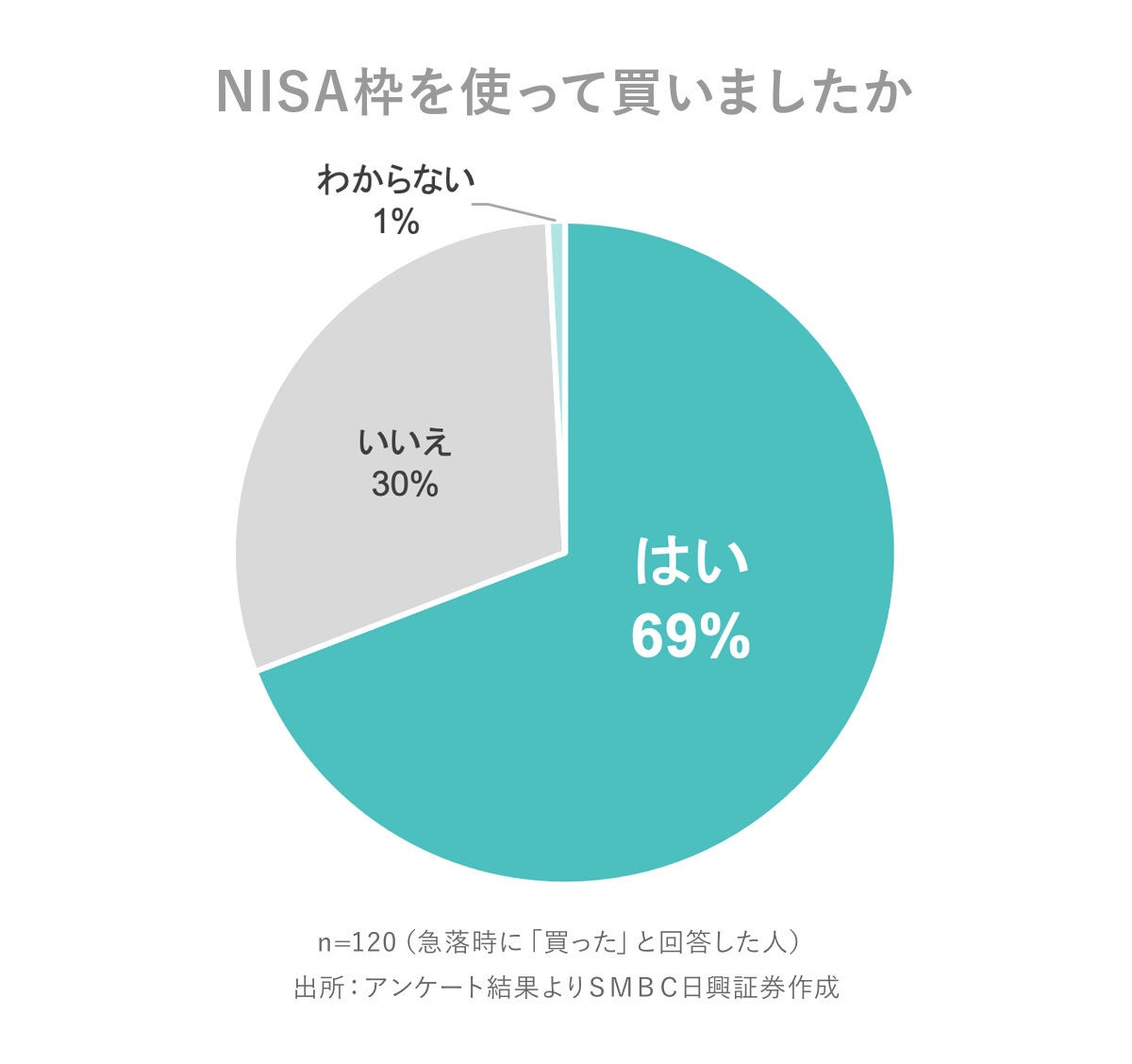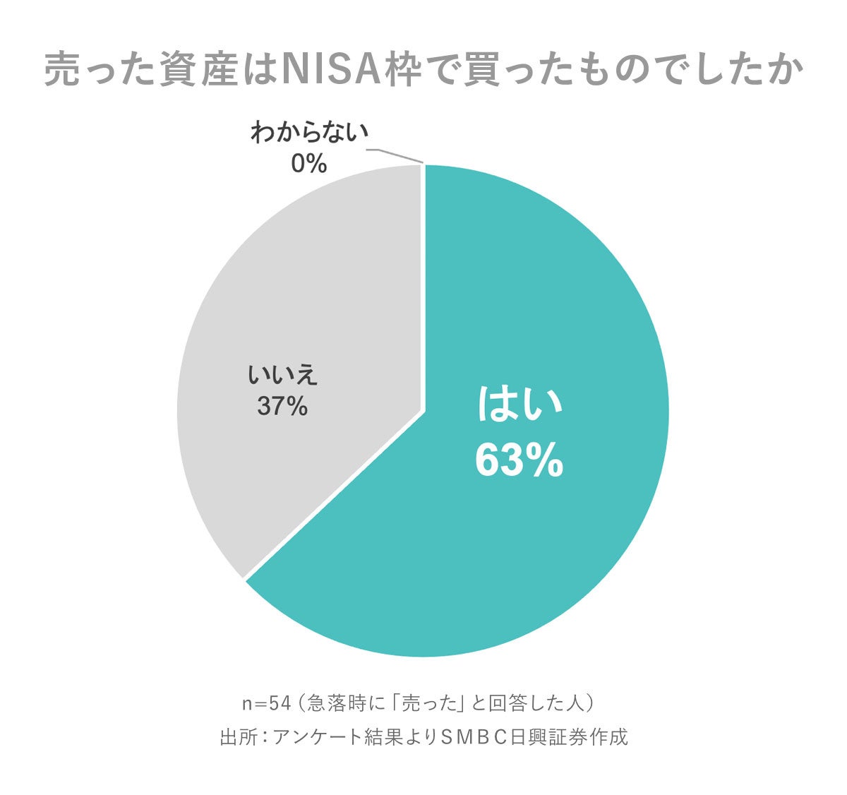 ・「資産を買った」「資産を売った」と答えた方に、NISAの利活用をしたかお聞きしたところ、6~7割がNISAで売買したものだった