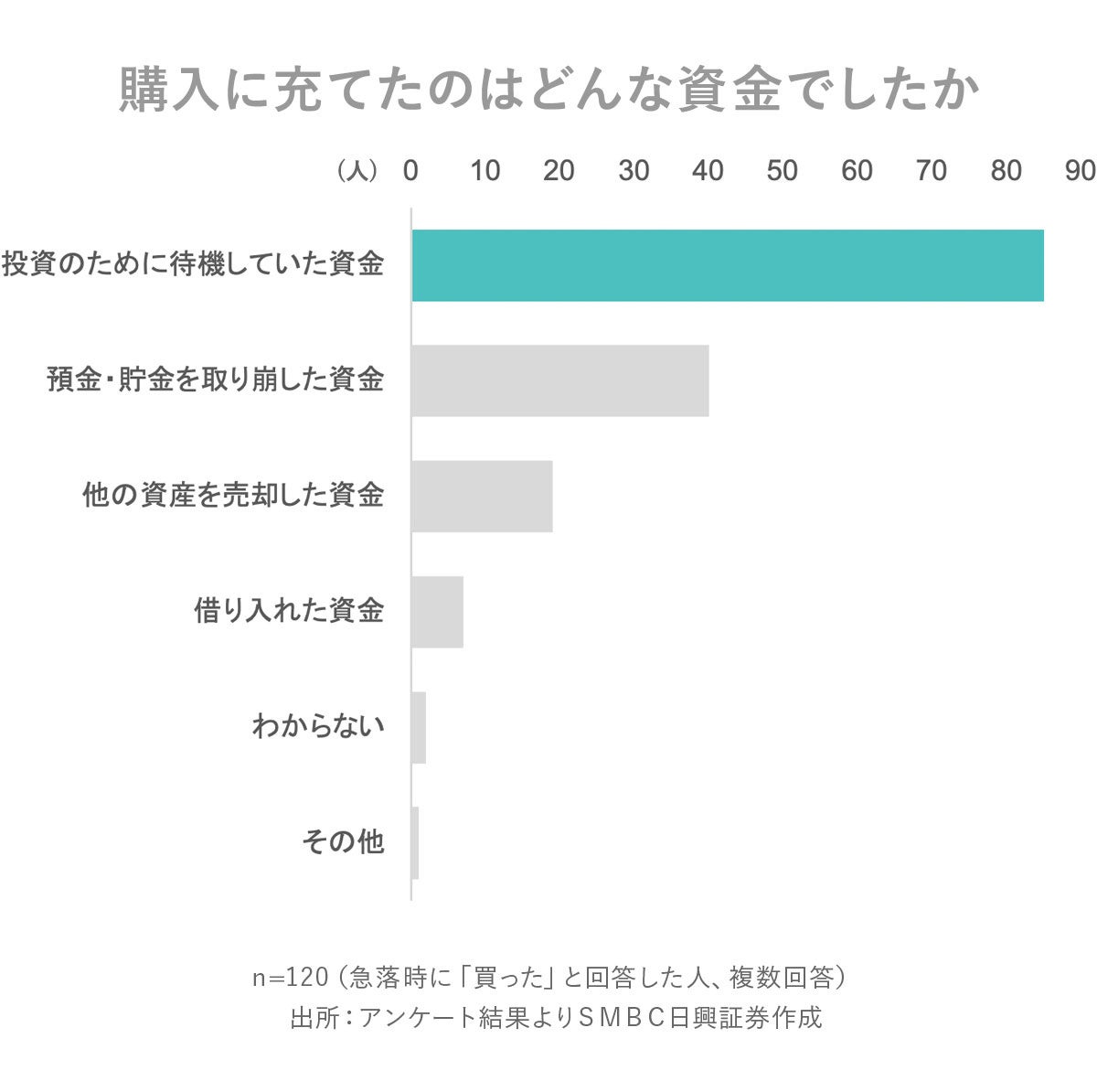 ・「資産を買った」と答えた方にその財源をお聞きしたところ、「投資のために待機していた資金」と回答した人が約7割に上った