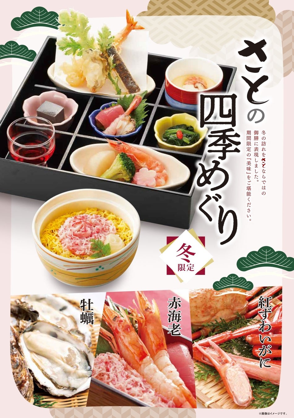 和食さと 冬の味覚 『紅ずわいがに』 や『牡蠣』 を使った限定メニュー登場!!