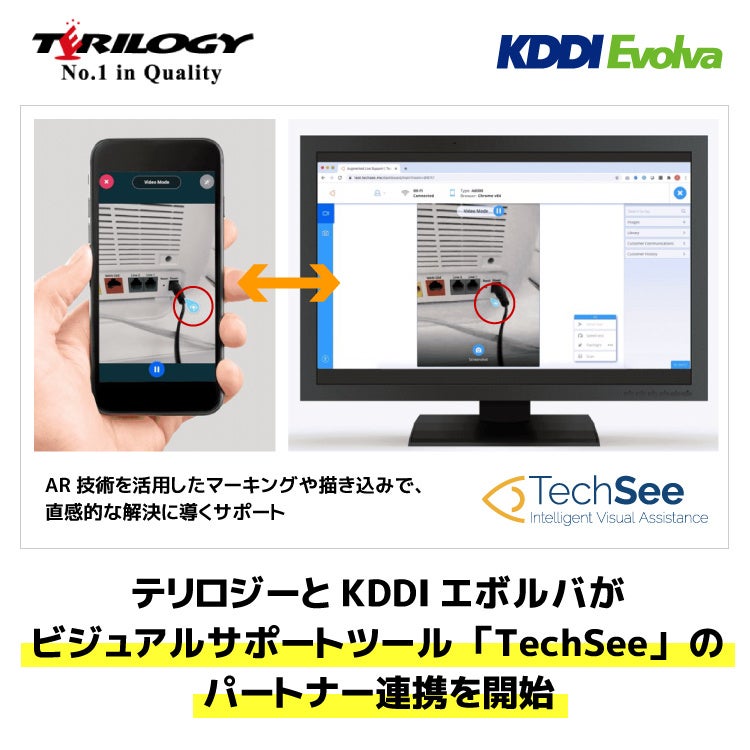 テリロジーとKDDIエボルバが ビジュアルサポートツール「TechSee」のパートナー連携を開始 ~映像と音声で解決するコンタクトセンター「映像サポートサービス」を正式リリース