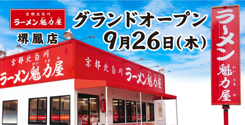【オープン記念価格×餃子無料券配布!】京都北白川ラーメン魁力屋「堺鳳店」(大阪府堺市)が2024年9月26日(木)にグランドオープン!