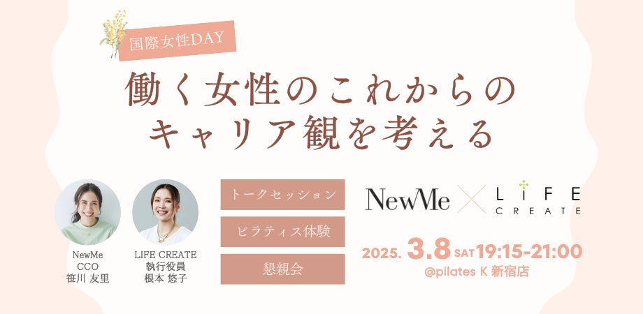 NewMe × LIFE CREATE「働く女性のこれからのキャリア観を考える」国際女性デーイベントを開催【日時:3月8日(土)場所:pilates K新宿)】