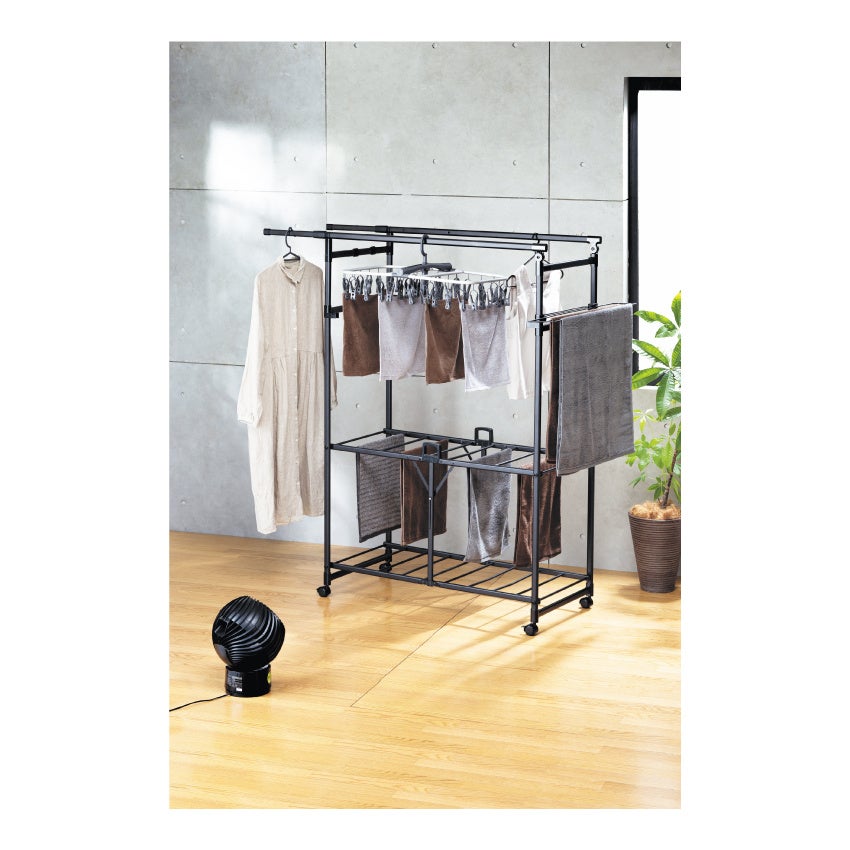 グッドデザイン賞受賞のランドリーラックは、軽量かつ可動しやすくコンパクトに収納できるのにバスタオル等大物も乾燥しやすい設計。梅雨時室内干しの救世主として活躍します。
