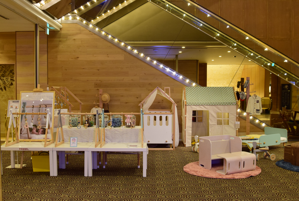 「HOPPLキッズラウンジ」は、予約開始よりご好評をいただいている「HOPPL キッズグランドルーム」に引き続き、サステナブルなベビー&キッズ用品を実際に体験できる場として、実際の子供部屋のようにロビーの一部をディスプレイ。コロコロチェア&デスク、ベビーベッド、ファーストウッディバイクなどHOPPL全ラインナップが勢揃いしており、真夏の厳しい暑さを気にすることなくお子さまが遊べる空間となっております。チェックイン中や館内6つのレストラン利用の前後に、保護者の方がお子さまをお連れする場所としても最適です。森の中のような可愛い木製キッズインテリアに囲まれた「HOPPLキッズラウンジ」を、是非ホテルでの優雅な時間と共にお楽しみください。