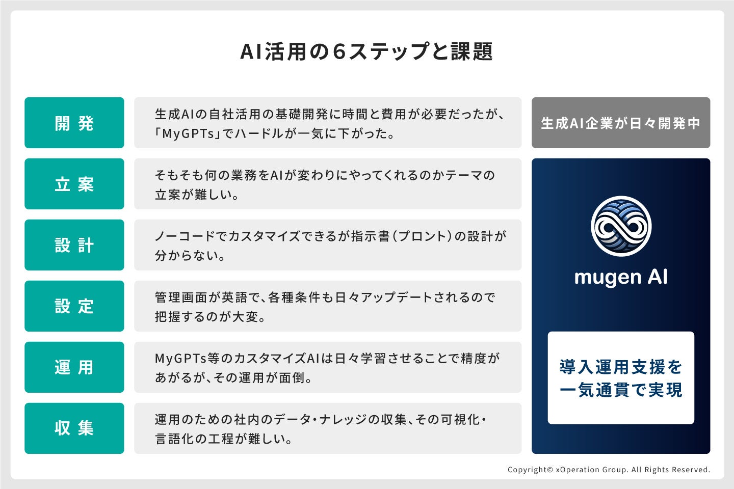 この様にMyGPTsの活用に際しては、技術的な観点以外にも導入企業がクリアにすべき課題があります。