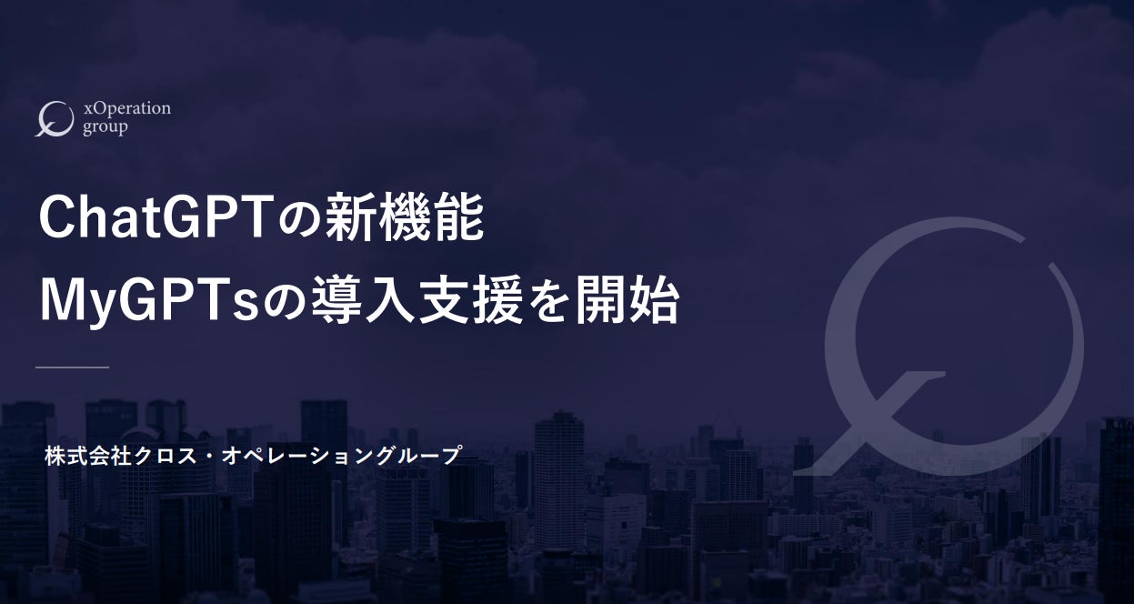 先端技術の業務(Ops)融合を得意とし、生成AIを活用した業務改善支援を行う株式会社クロス・オペレーショングループ(東京都千代田区、代表取締役:田中 亮大、以下XOP)は、日本初※1となる「MyGPTs」導入支援/活用支援サービスの提供を開始することをお知らせいたします。