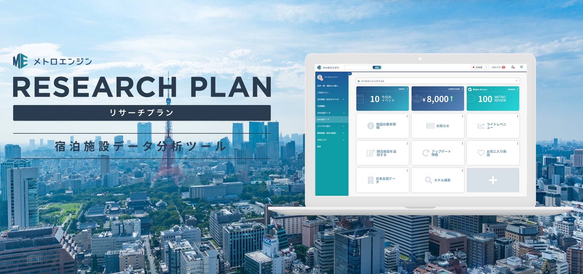 メトロエンジンでは、ビックデータからAIを活用し客室価格の設定を行う『メトロエンジン レベニューマネジメント』や宿泊施設・市場の調査分析ツール『リサーチプラン』を中心に、AI・データ駆動型のDXサービス及び経営支援ソリューションを複数展示いたします。