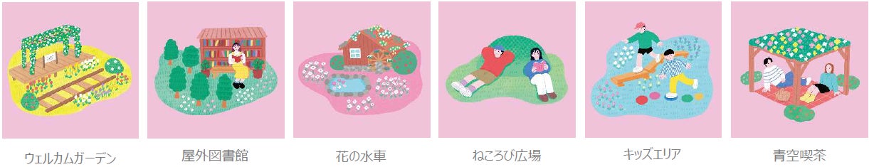 屋外図書館やフラワーロス削減につながるワークショップがイベント初登場!お花やコーヒー&スイーツ等、週ごとにテーマが変わるマルシェを展開!ピクニック気分で春を堪能できる館内のテイクアウトメニューも充実