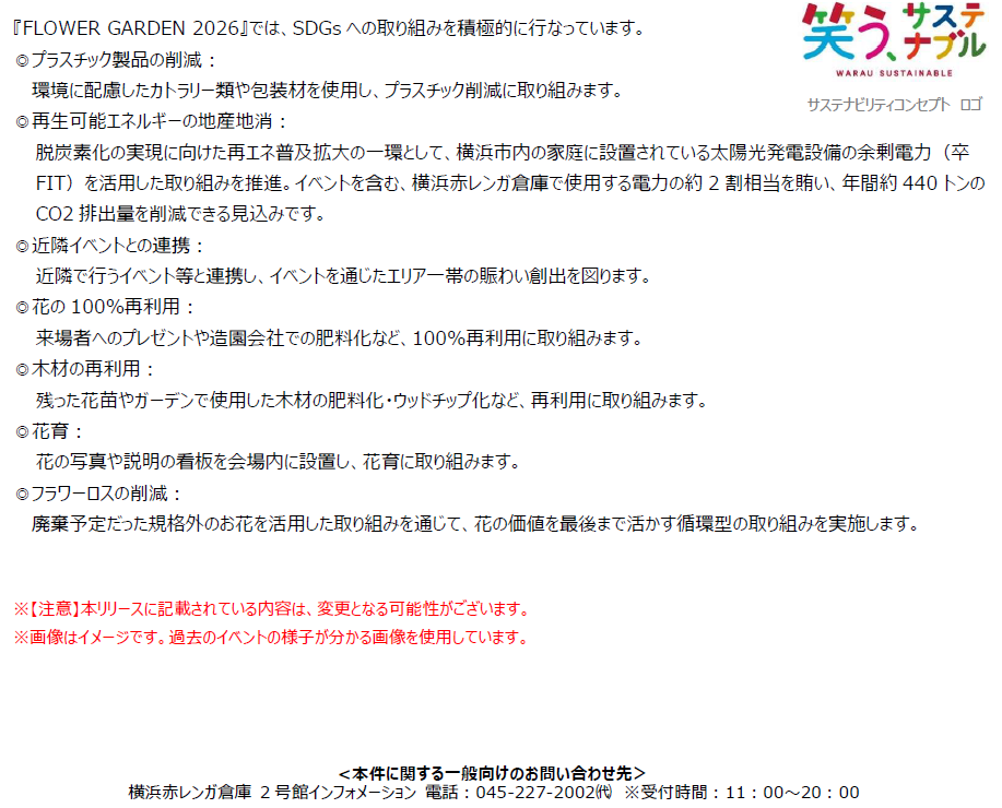 来年は、横浜での最上位(A1)クラスの国際園芸博覧会「GREEN×EXPO 2027(2027年国際園芸博覧会)」開催を控えるため、近隣イベントとの連携施策も多数実施し1年後の開催を盛り上げます。