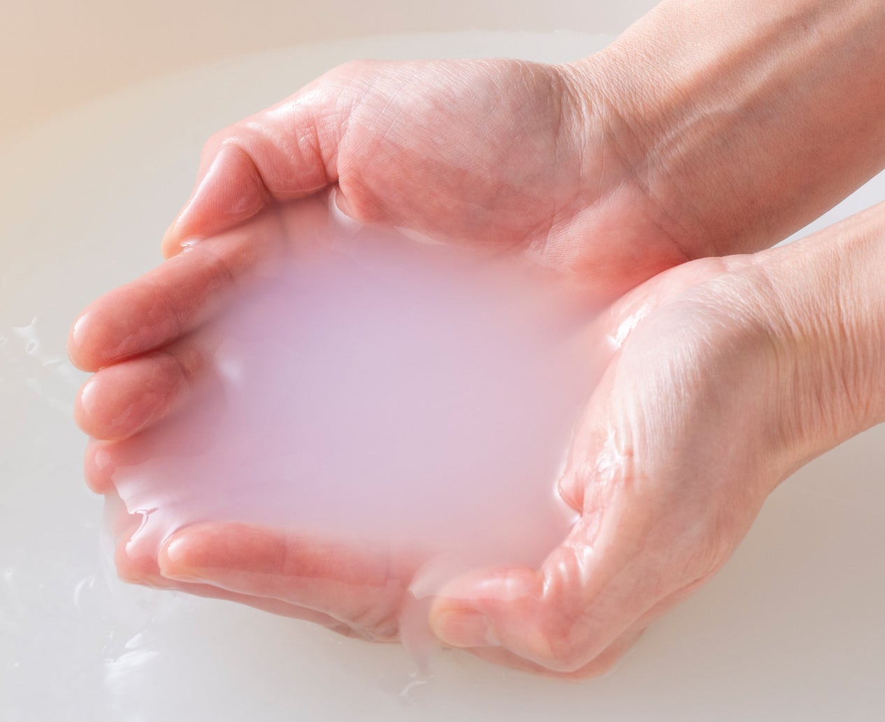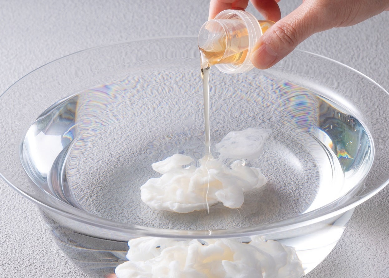 植物エキス入りの入浴剤をお湯に入れてかき混ぜると、ぬくもり感のある乳白色に変わります。とろみのある乳白色のお湯がお肌をやさしく包み込みます。