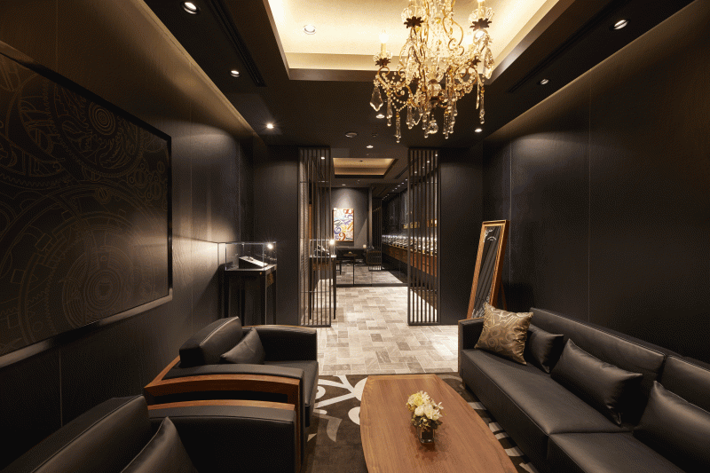 重厚感あふれる贅沢な空間には、数本しか作られていない世界的にも貴重なフランク ミュラーのマスターピースが特別に展示され、その美しさと複雑な機能をじっくりとご堪能いただけます。また、お客様の好みに合わせて腕時計の針やストラップをカスタムできる、パーソナルカスタマイズサービスもご用意しております。