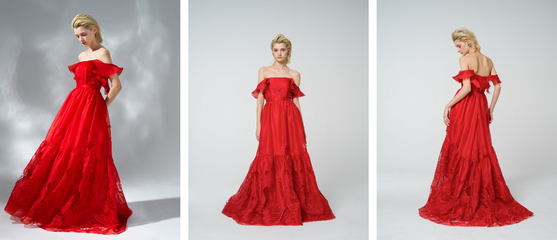 世界中のセレブリティから支持されているYOLANCRISとプリマカーラの初めてのコラボレートドレスは、YOLANCRISの個性はそのままに、胸元の沿い方やウエストの位置等プリマカーラオリジナルの美しいドレスパターンのエッセンスが加わっています。