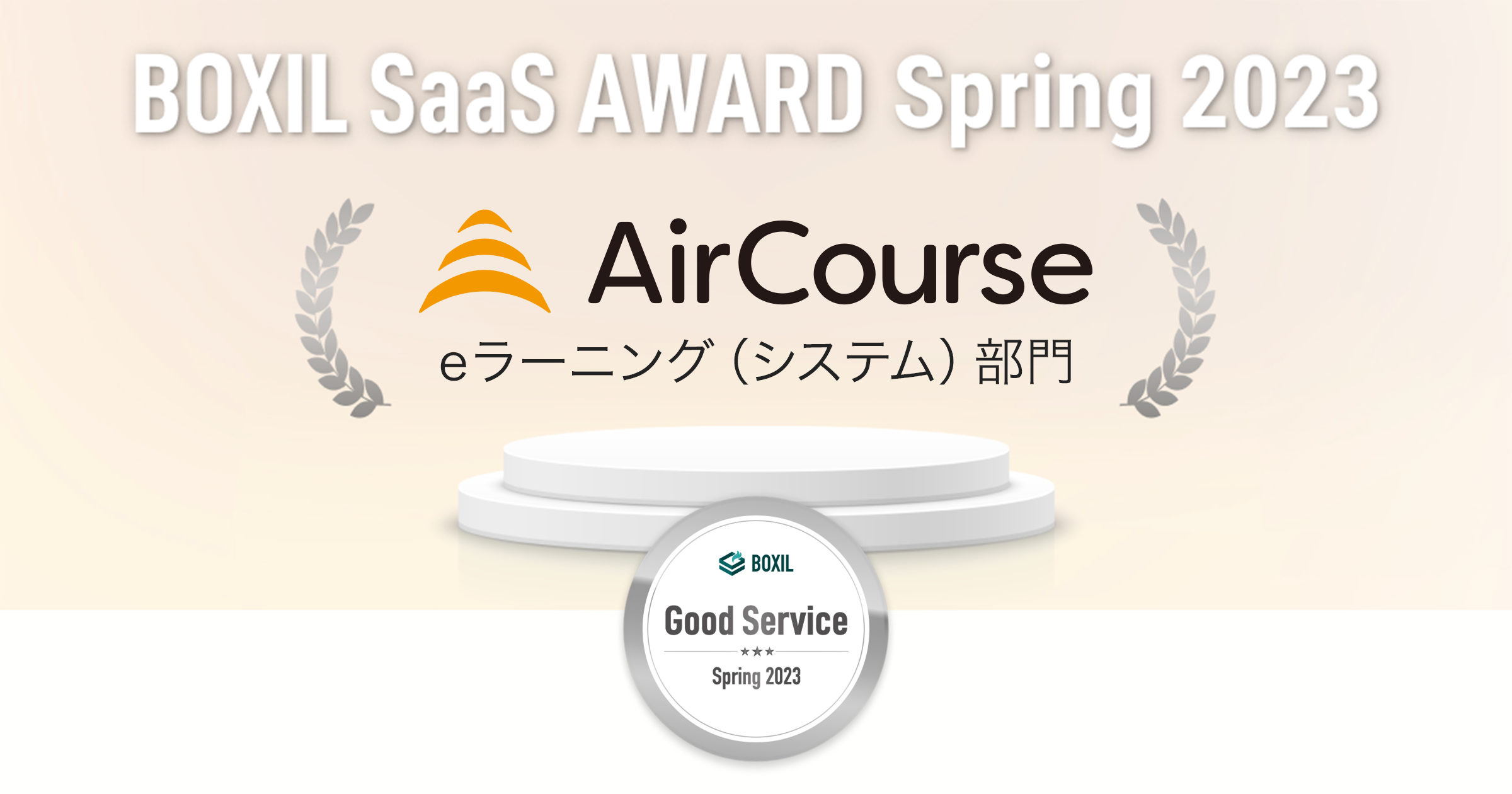 企業向け社員教育クラウドサービスAirCourseが、「BOXIL SaaS AWARD Spring 2023」eラーニング(システム)部門で「Good Service」に選出
