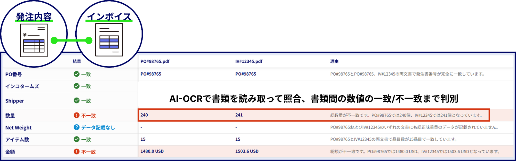 AIインボイス照合機能を活用し、メーカーごとに異なる書類フォーマットの確認作業を自動化・標準化。作業時間の最大50%削減に加え担当者の心理的負担も大幅に軽減。 -