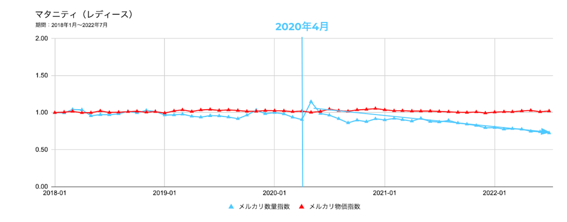- <ピックアップ> 出生数の減少に合わせて、「メルカリ」では「マタニティ」カテゴリーの数量指数が減少