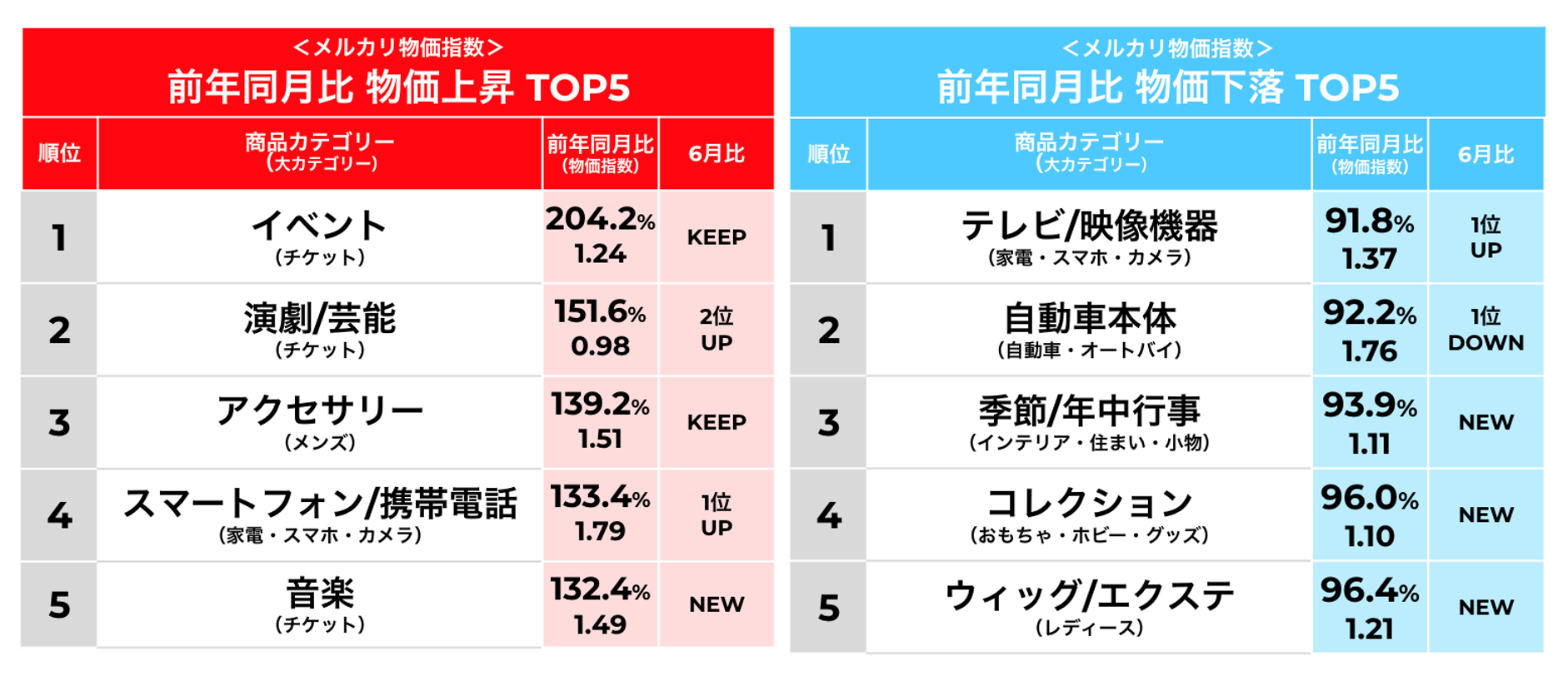 <メルカリ物価・数量指数からわかる7月トレンド通信>行動制限のない夏、イベントチケットの物価指数が昨年同期比約2倍