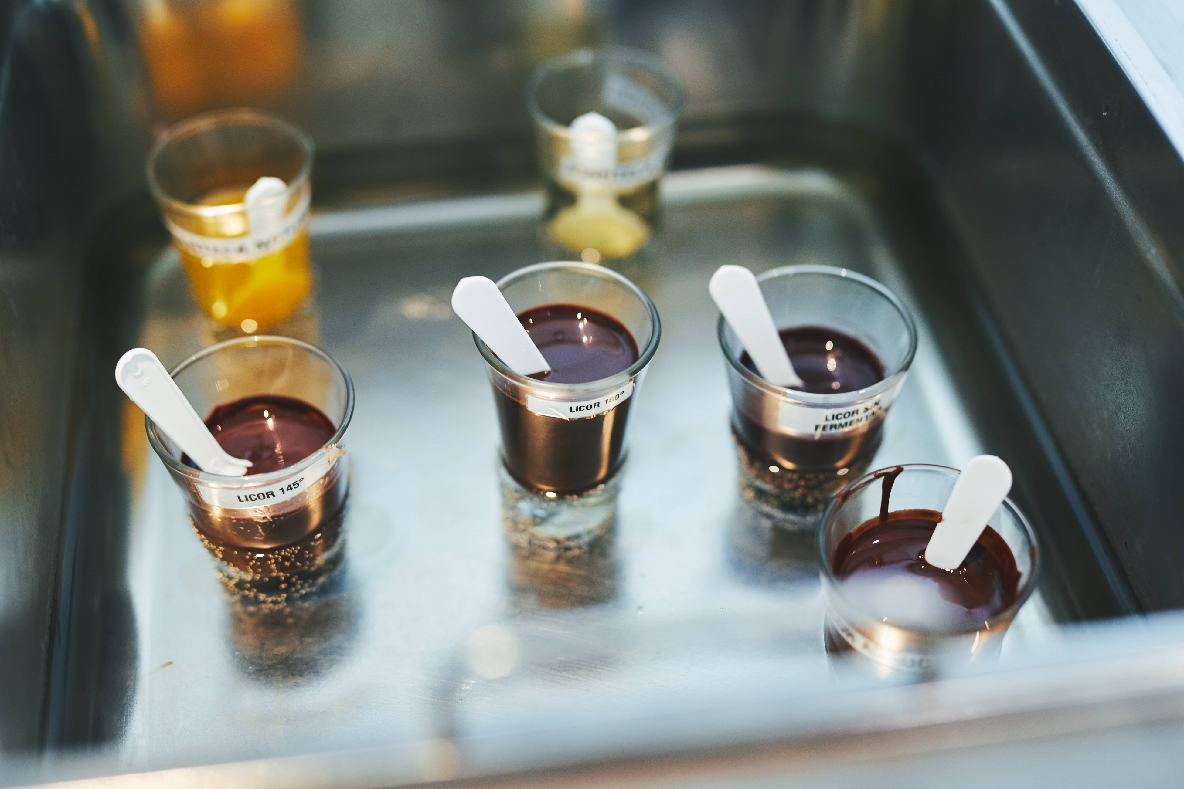 カカオマス、カカオバター、ミルク、砂糖の配合を0.1%単位で調整する。産地の個性を活かした彩り豊かなカカオリカーを掛け合わせる。味わいと香りの可能性は無限大、技術を重ね、時間と手間のかかる工程を経て、世界に一つだけの個性豊かなクーベルチュールが作り上げられます。この地でしか作れない。この人でしか作れない。唯一無二のチョコレートをお届けします。