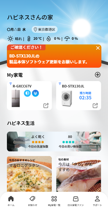 2. 家電品本体のソフトウェア更新をお知らせ【New】