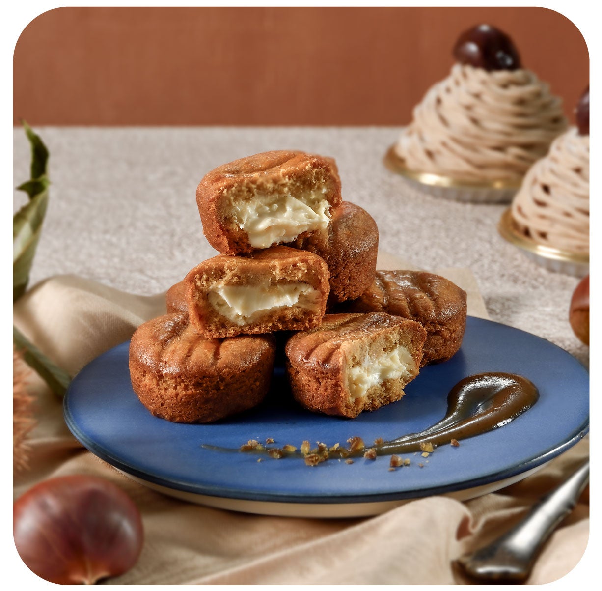 香り高い丹波栗のペーストを使用し、モンブランケーキを思わせる味わいがひとくちで楽しめます。サクサクとしたクッキーの食感が、まろやかなホワイトチョコとおいしさを引き立て合います。 ひとくち食べるごとにふんわりと広がる栗の風味と優しい甘さ。上品な味わいを堪能できる一品です。