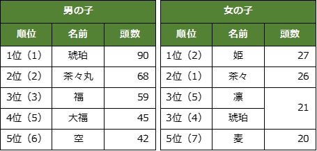 男の子部門では「琥珀」が昨年に続き1位となりました。