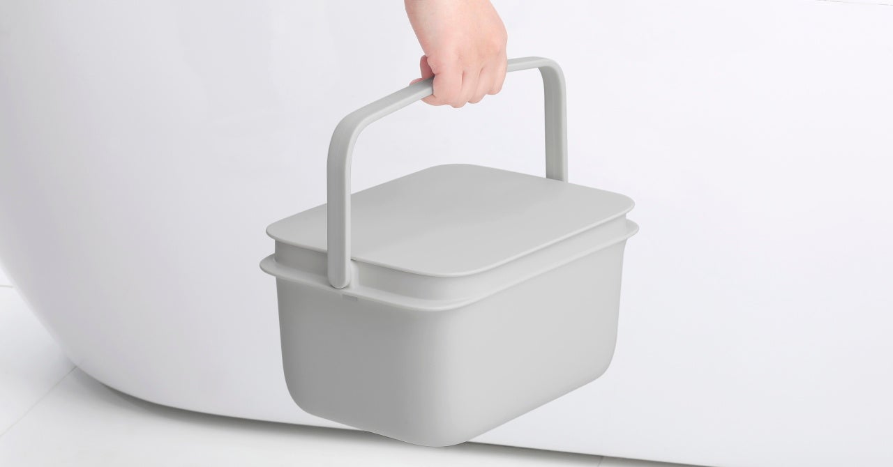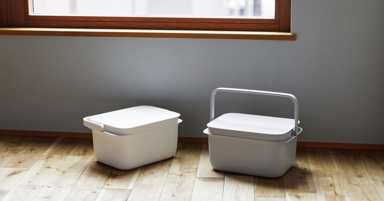 「バケツ」は、浸け置きや掃除などの使いやすさにこだわり、コンパクトなスクエア型のバケツです。スクエア型のため、部屋の角に隙間を作らず置いておけます。容量は約5Lとコンパクトで洗面台でも注水しやすいかたちです。浸け置き時は付属のフタをかぶせることで中身が隠せておけて、お子様やペットのいるご家庭も安心です。フタは本体のフチに立てておけるので邪魔になりません。目盛り(1リットル毎)付きで、洗剤を希釈する際に水の量がひと目でわかります。ハンドルは幅広で手当りが良く、安定して持ち運びができます。