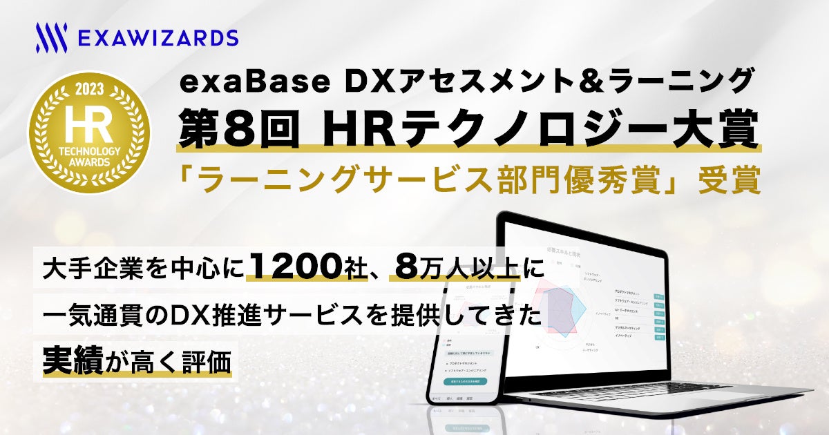 この度、第8回 HRテクノロジー大賞にて弊社の「exaBase DXアセスメント&ラーニング」がラーニングサービス部門優秀賞を頂戴することができ、大変光栄だと感じています。