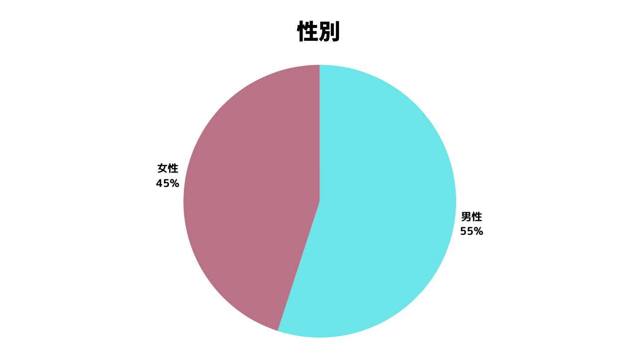 ・回答者の年齢層は30代が最も多く40.0%、次に20代が多く25.0%という結果になりました。回答者の男女比はおおよそ6:4です。