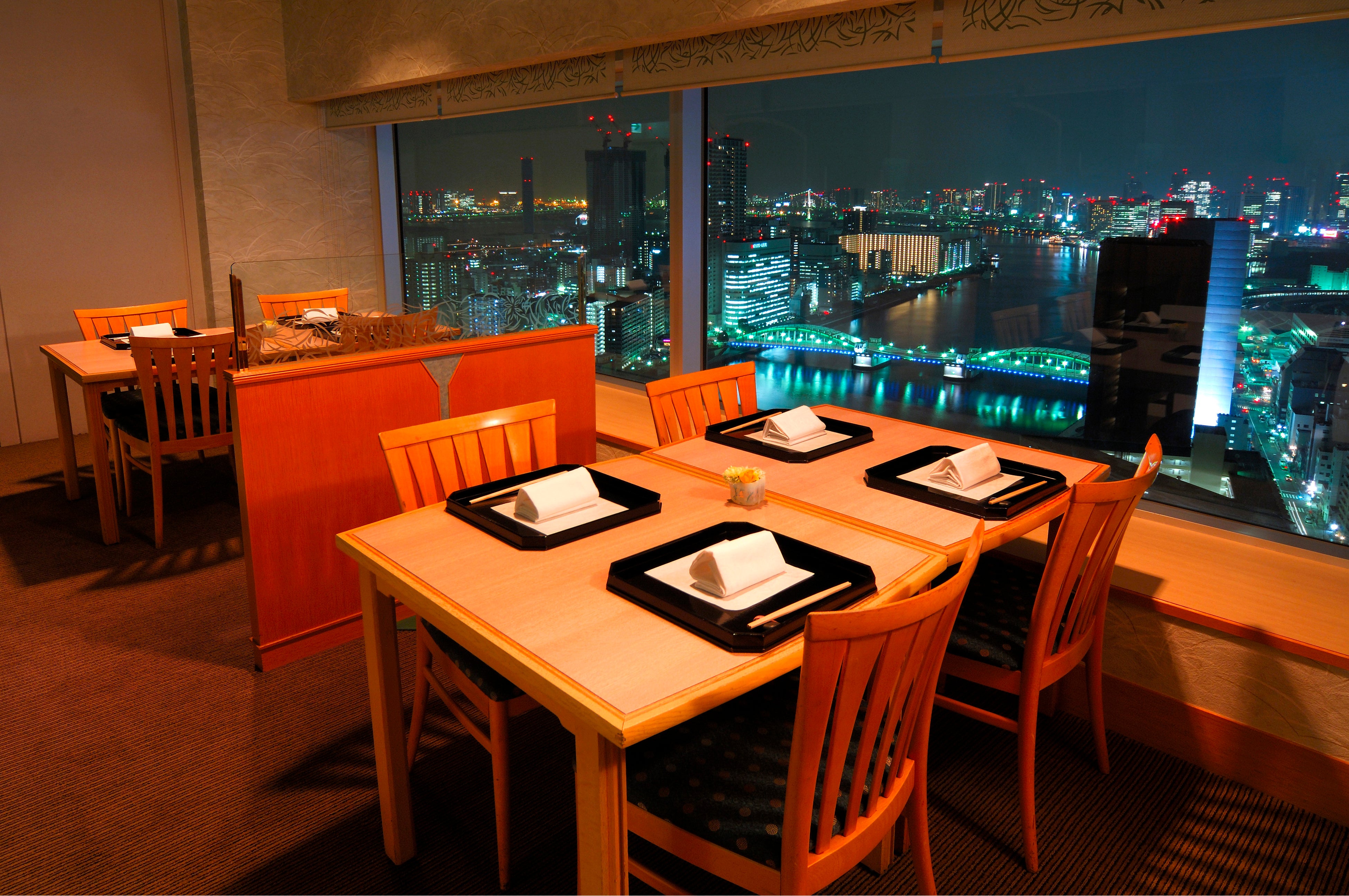 東京ベイエイリアなどを一望できる落ち着いた雰囲気で大切な方との特別な和食ディナーをお楽しみください。