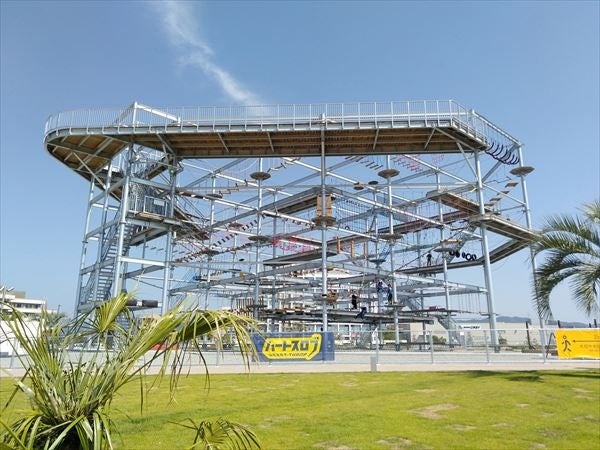 高さ15mの高所アスレチックをはじめ、スケボーパーク・サッカーグラウンドなどのスポーツ施設を備えた『アクティビティエリア』や、ビーチをイメージしたBBQやグランピング施設、テラス席の飲食店が並ぶ 『コミュニティエリア』、岡田浦漁港とのタイアップにより、泉州の自然の恵みをたくさん受けた、地元ならではの食材が楽しめる『マルシェエリア』、キーカラーが象徴的なヴィラが並び、キッチン、リビング、ジャグジー、BBQダイニングが用意されたお部屋でプライベートな時間を楽しめる『グランピングエリア』の4つのゾーンに分かれており、一日を通してスポーツ・食・レジャーを丸ごとお楽しみいただけます。
