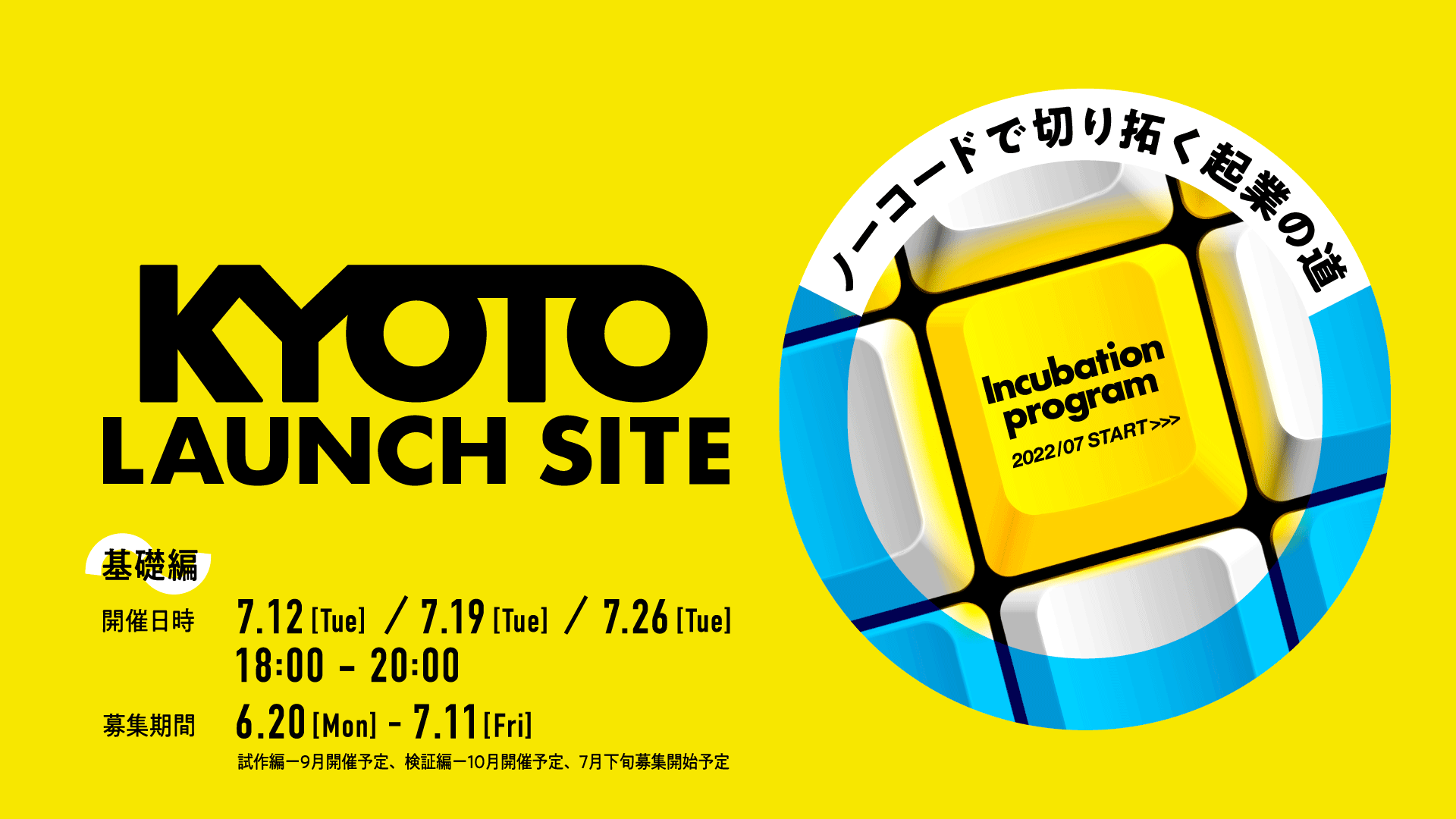 6月20日(月)より募集中は、下記の基礎フェーズとなります。当社は京都知恵産業創造の森と共に、スタートアップへの支援環境を充実させ、更なるスタートアップの創出・成長をサポートして参ります。