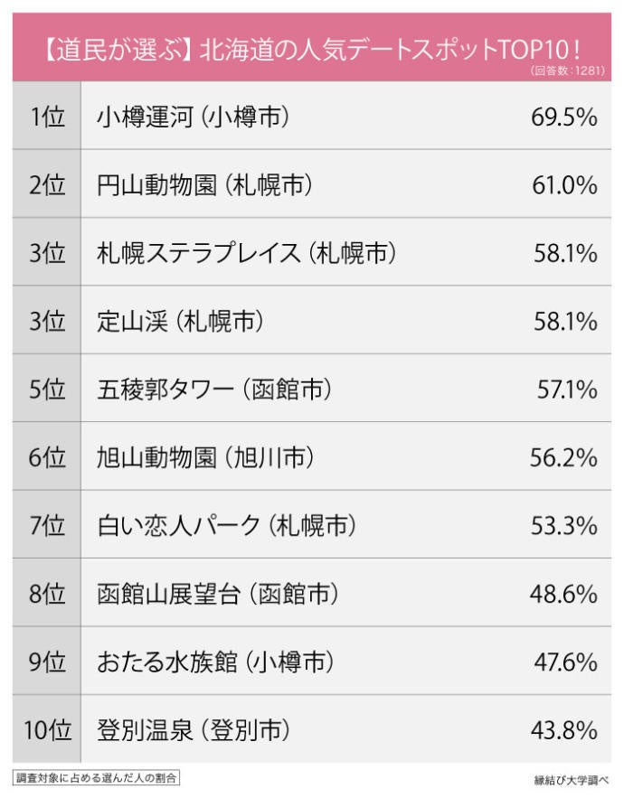 北海道民が選んだ「人気デートスポットランキング」はいかがでしたか?