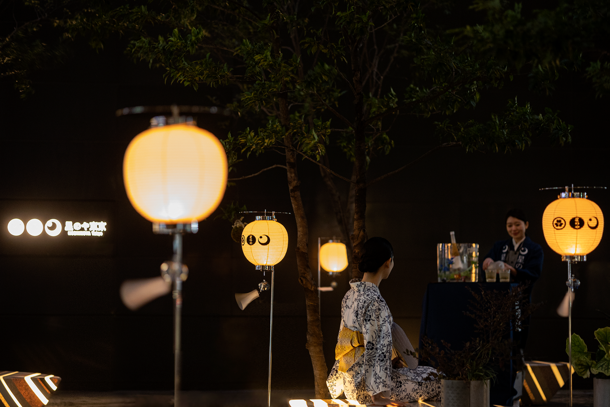 星のや広場での宵涼み(涼み席、発酵夏氷、みりんのカクテル)、