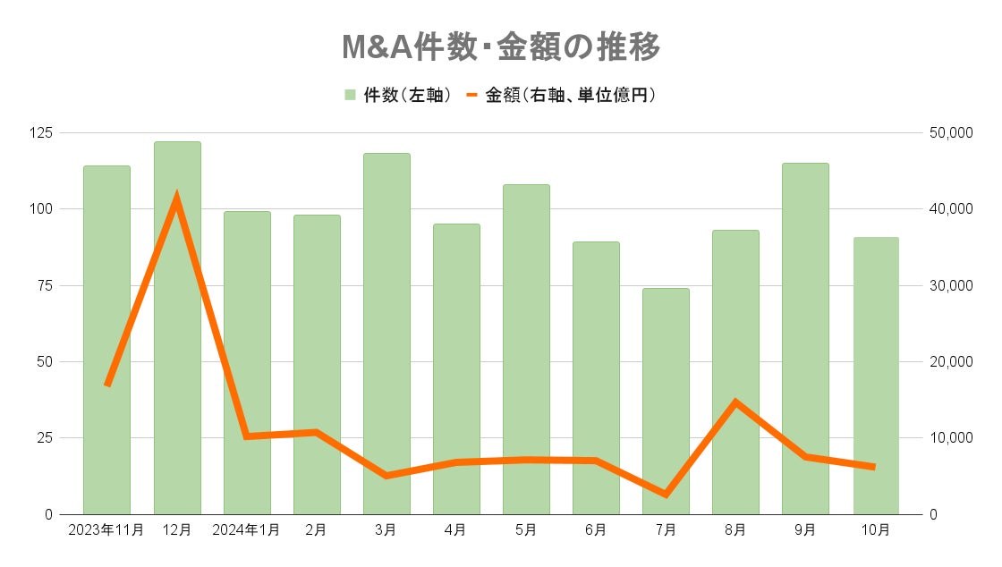 2024年1~10月の累計は980件で前年の832件を超え、前年を大きく上回るハイペースが続いています。累計額は8兆円を突破し、昨年の同時期までの累計額6兆4130億円を上回りました。