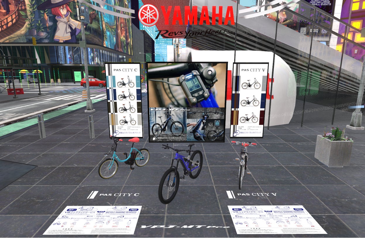 ヤマハ発動機は、昨年の「バーチャルマーケット6」出展時に大好評だった“バイクのVRシェアライドサービス”に続いて、今回は“電動アシスト自転車のVRシェアライドサービス”を展開いたします。電動アシスト自転車シリーズの人気モデルである「YPJ-MT Pro」「City-C」「City-V」の3種類を精巧に再現した3Dモデルを、パラリアルニューヨークの街の入り口に設置。これらバーチャル車両に乗って会場内を自由に移動できます。バーチャル電動アシスト自転車の操作は、ヘッドマウントディスプレイを着用したコントローラー操作とデスクトップ操作に対応しているほか、フルボディートラッキングを着用した方は、足を動かすことで電動アシスト自転車を実際に漕いで操作することも可能です。