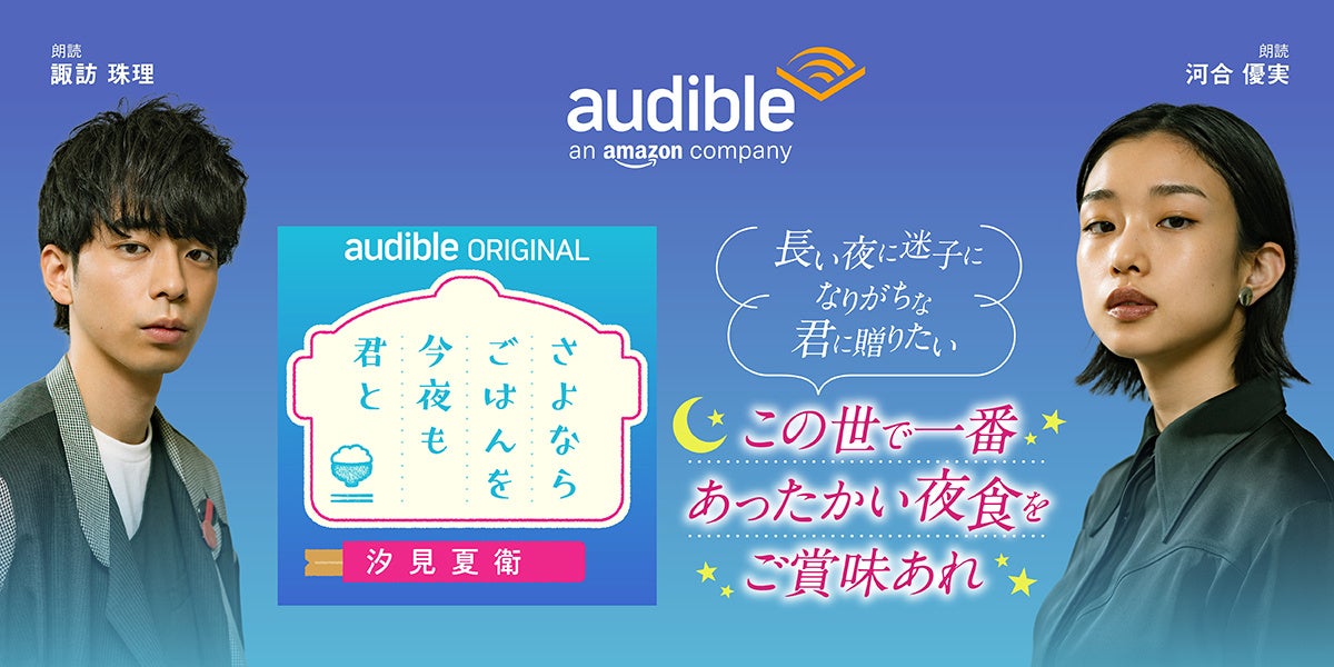 世界最大級のオーディオブック及び音声コンテンツ制作・配信サービスであるAmazonオーディブル(以下、Audible)は、汐見夏衛さんの書き下ろし最新作『さよならごはんを今夜も君と』を河合優実さんと諏訪珠理さんお二人の朗読で配信開始したことをお知らせします。