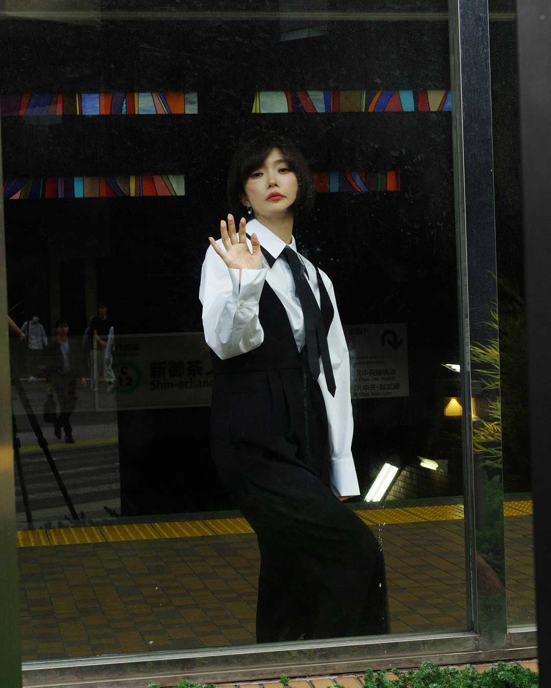 言葉と生のあわいを見つめ続ける作家、川上未映子が「自分らしい幸せ」を模索する女性のためのブランド、SA VILLE / SA VIEを纏い街を歩く。