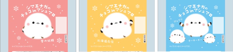 商品特徴:まろやかなミルクチョコレートをシマエナガのようにふんわり柔らかなマシュマロで包みました。パッケージは全部で3種類あります。
