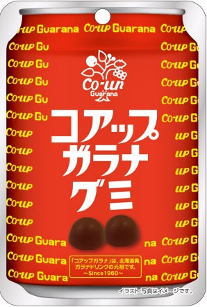 「コアップガラナグミ」は、日本コアップ株式会社が監修した北海道のソウルドリンク「コアップガラナ」とのコラボレーション商品です。ガラナ独特の甘みと香りが感じられる味の再現度が高いグミに仕上げました。