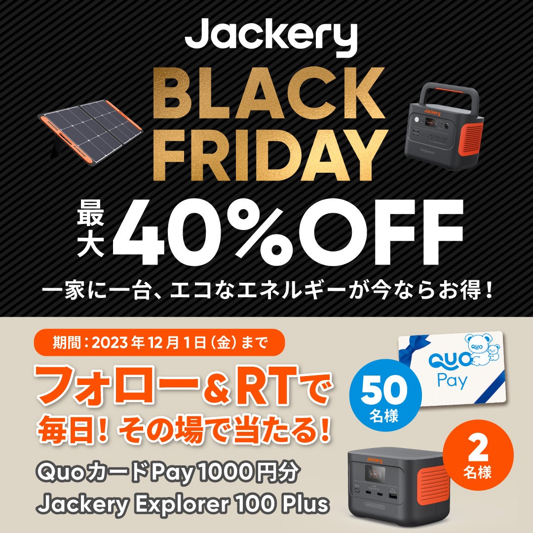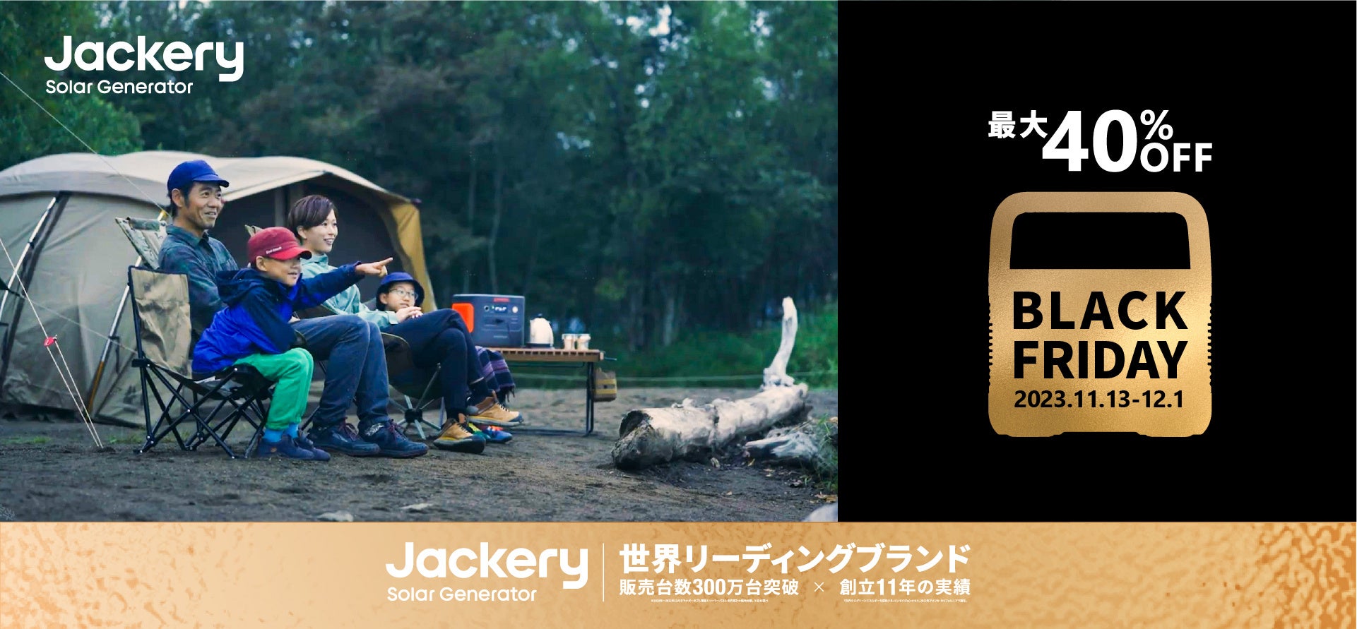 Jackeryのポータブル電源とソーラーパネルは、キャンプ、車中泊などのアウトドアだけではなく、もしも長期停電になった時の活用はもちろん、家庭での節電やエコなライフスタイルにも役立ちます。当社本年度のブラックフライデーセールのテーマを「一家に一台、エコなエネルギーが今ならお得!」として、ご家族の安全を守るために、あるいは電気代を減らしながら環境に優しいエコなライフスタイルを実現するために、お得に楽しくショッピングできる、この機会をぜひご活用ください!