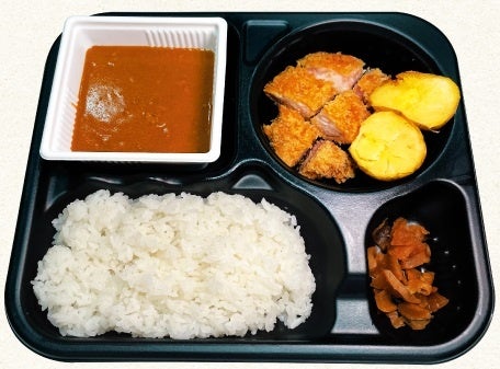 記念新商品として『あじ豚ひき肉かつカレー弁当』を限定発売させていただきます。宮崎県産あじ豚を使用した店舗仕込みのカレーです。ひとくち大にカットしたとんかつも一緒にお召しあがり下さい。