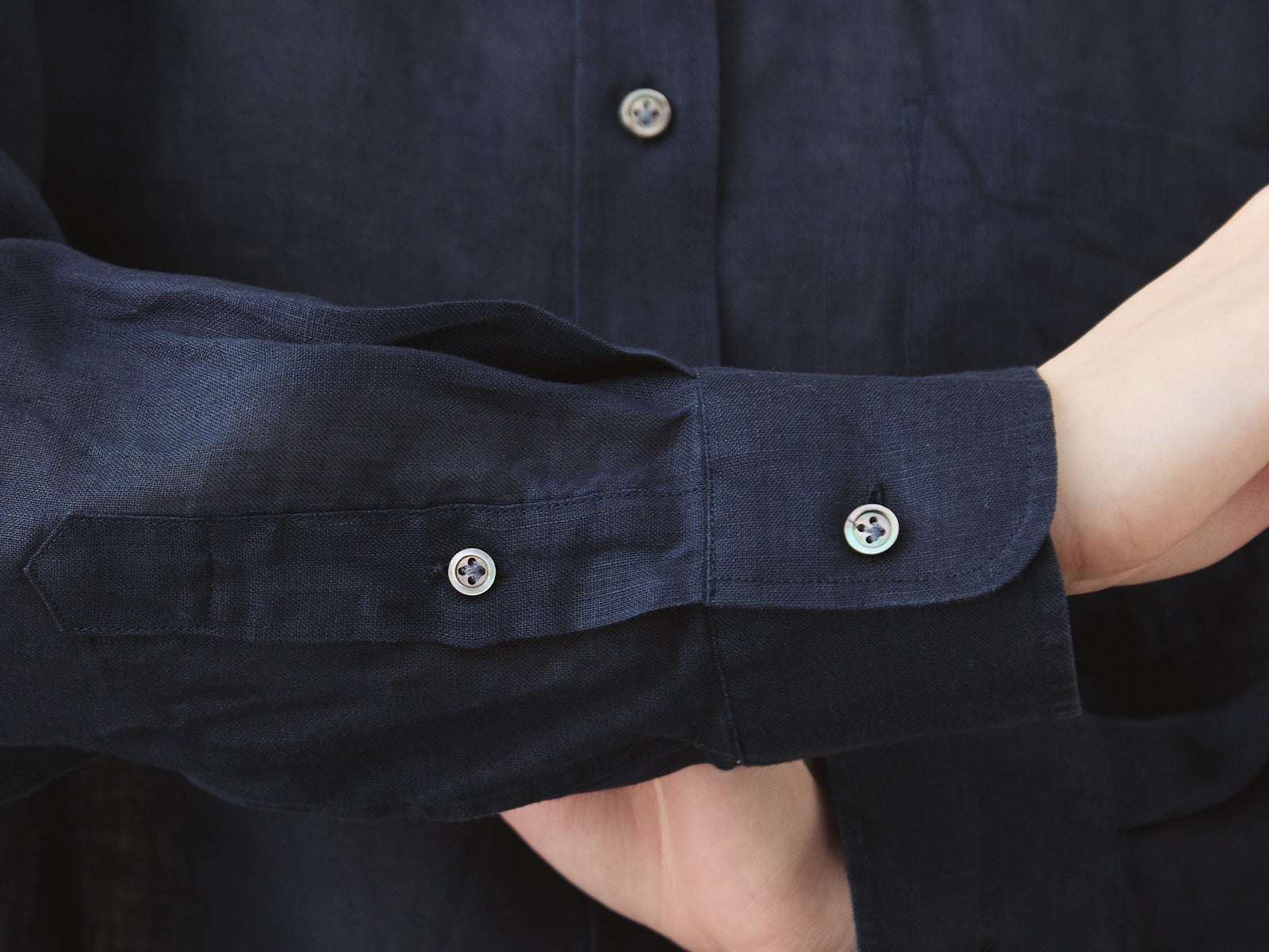 リネンの生地にハリ感があるため、襟の立ちや、袖をまくった感じ、全体のフォルムが簡単に決まりやすいです。