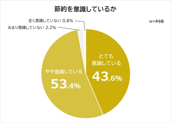 全国の男女498人に「節約を意識していますか」と聞いたところ、「とても意識している」「やや意識している」と答えた人が合わせて97.0%という結果に。節約を意識している人が圧倒的に多いとわかりました。