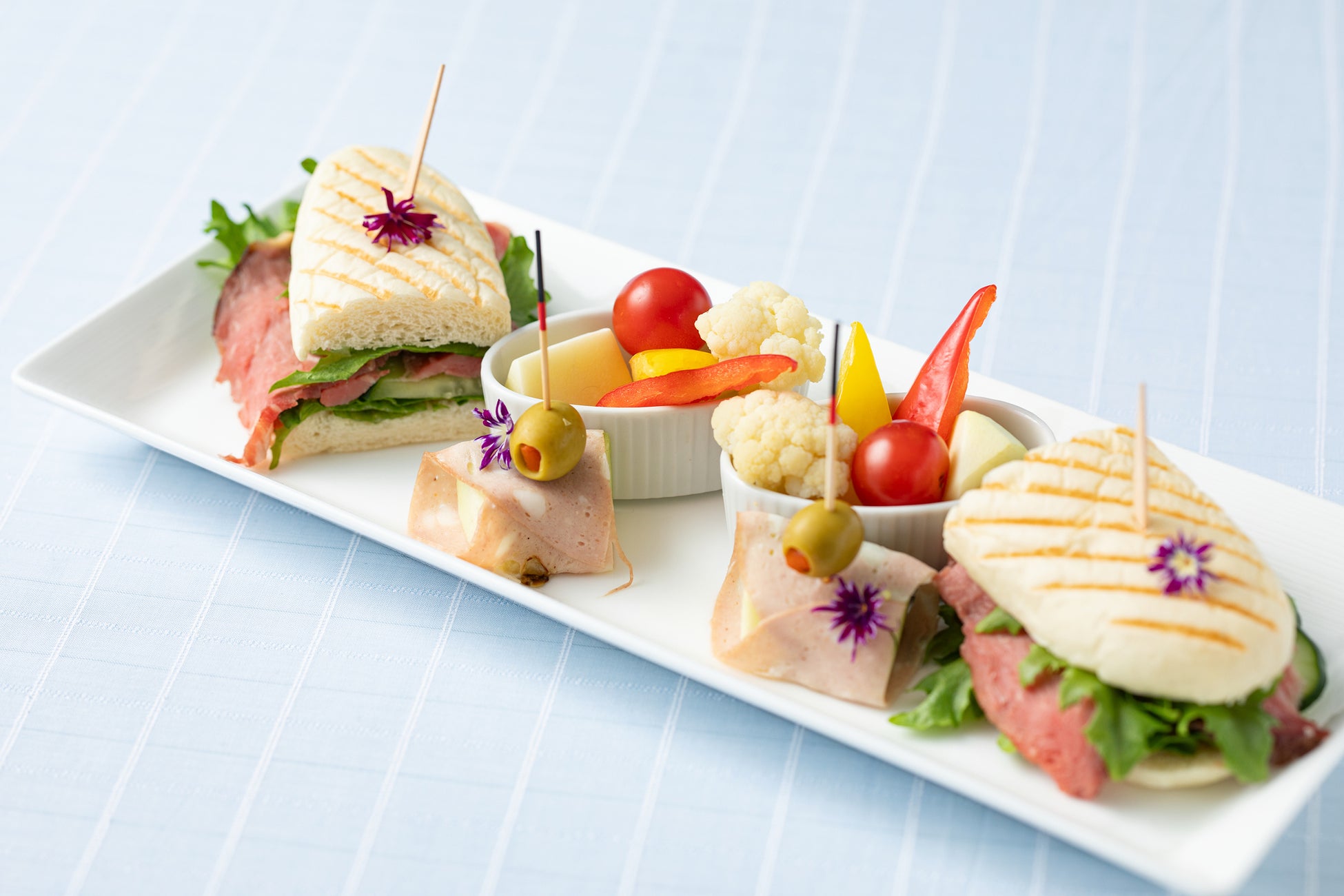 中段のセイボリーでは、”コールドビーフのパニーニ”、スイーツの口直しにもぴったりの “小笠原産青パパイヤと野菜のピクルス”と“フレッシュメロンとモルタデラのピンチョス”がラインアップ。このセイボリーのピクルスは、東京都小笠原産の青パパイヤを使用。小笠原の太陽をたっぷり浴びて育った青パパイヤのシャキシャキとした食感は注目です。